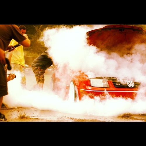 We have liked Jarrid’s GLI for a while now. He used to live near Santa Barbara. Jarrid would cruise up to SB, hang out, and ride some bmx. Now he is out on the east coast and still showing Slamburlgars some love with static slam and burn outs. *note the Slamburglars sticker on his front valence