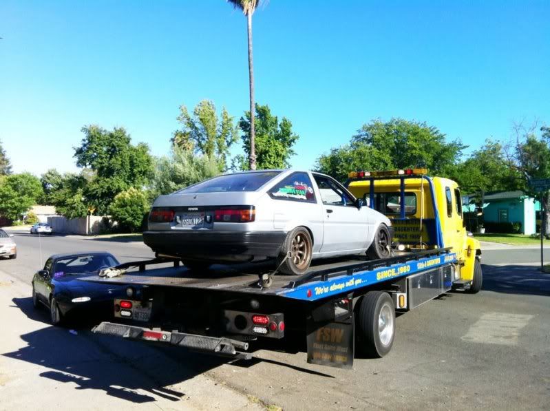 got it all loaded up on the flatbed at the end of the day after convincing the tow truck driver that it wasn’t too low to get on.